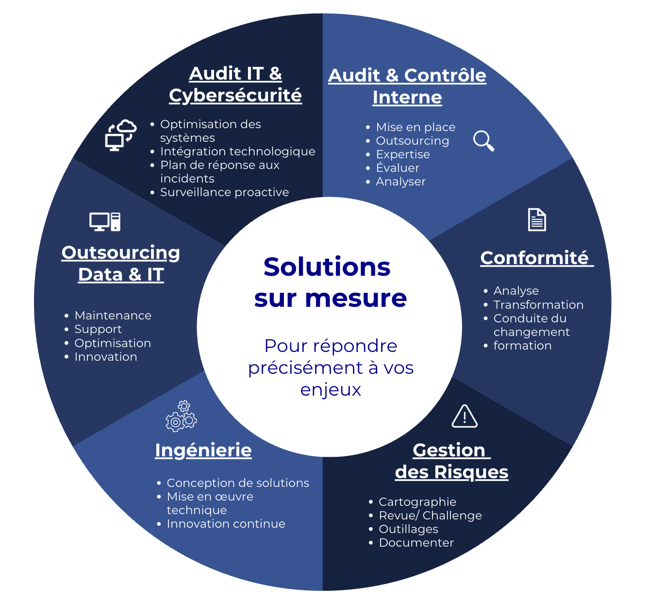 Chez ODIT Gouvernance, nous offrons des solutions innovantes en Risques et Informatique pour transformer vos défis en opportunités. Nos services incluent l'audit, la gestion du risque, la gouvernance numérique et l'externalisation Informatique, conçus pour optimiser vos opérations et sécuriser votre entreprise.
